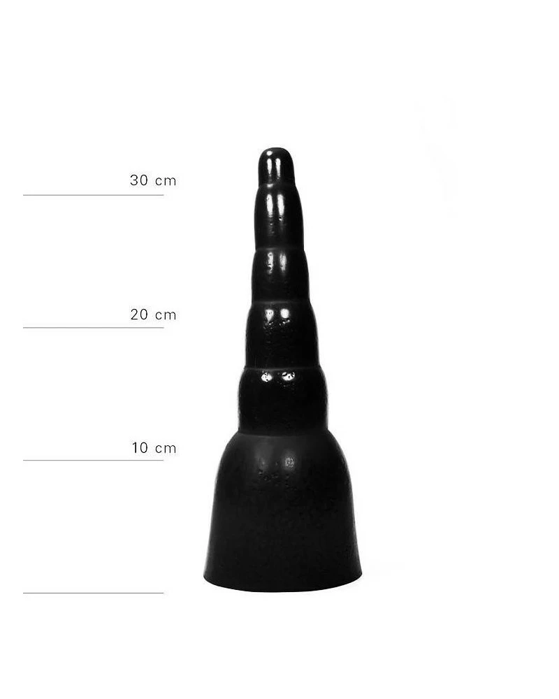 Ce gode All Black est composé d’une forme avec une longueur insérable de 20cm. Il est au dessus d’une base large avec ventouse (non insérable).La largeur est progressive et va de 2.2 à 6.5cm. Il est fabriqué en PVC