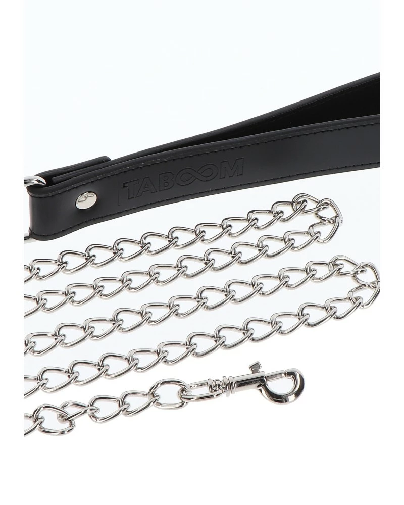 Le Collier-Laisse Elegant Taboom 1m est conçu avec une double fonction. Le collier en simili mesure 3cm de largeur et est doux à l’intérieur avec un rembourrage en polyester. La chaîne en métal mesure 1m de longueur et est conçue pour vous maintenir pendant vos séances BDSM.