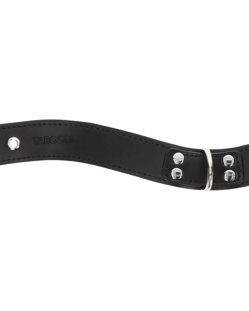 Découvrez le collier Sm Elegant Taboom Noir qui possède une largeur de 3 cm pour vous offrir une allure élégante et stylée. Doté d’un anneau central en métal, ce collier est idéal pour y placer une chaîne ou un autre accessoire.