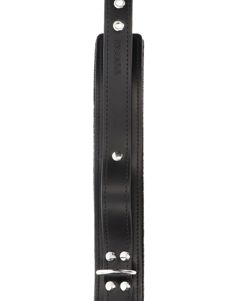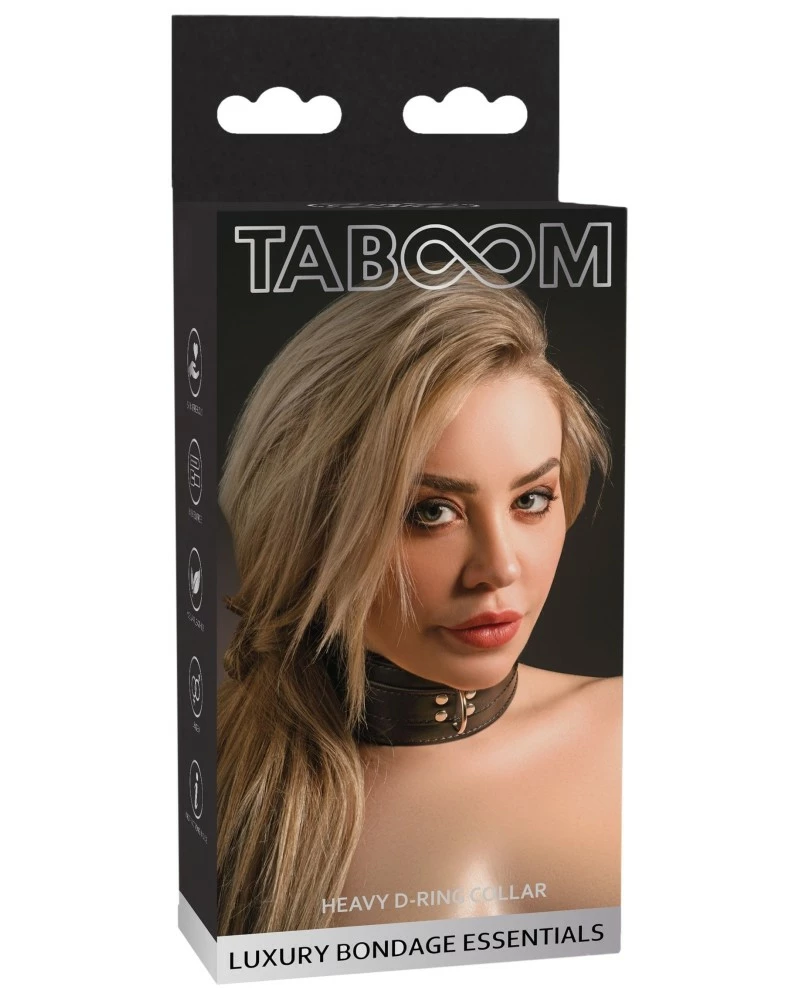 Découvrez le collier Sm Heavy de la marque Taboom. Avec une largeur de 4.3cm et un tour de cou de 42 à 51cm, ce collier présente des attaches métalliques et un anneau à l’avant.