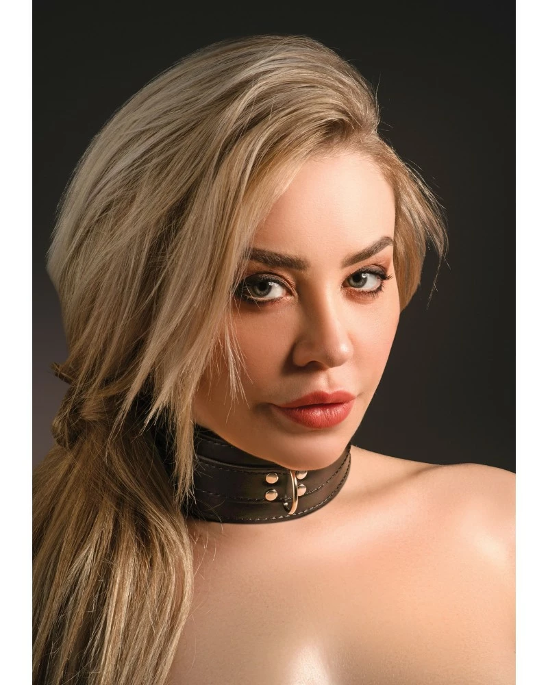 L’intérieur est conçu avec une matière douce et le collier est fabriqué en simili polyuréthane de couleur noire.
