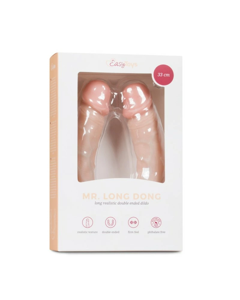 Ce double dildo Mr Long est un sextoy de la marque EasyToys proposé ici en version Small.C’est-à-dire qu’il est composé d’une longueur de 33cm pour une largeur de 3.5cm.La forme est souple et le relief veiné. Fabriqué en PVC sans phtalate