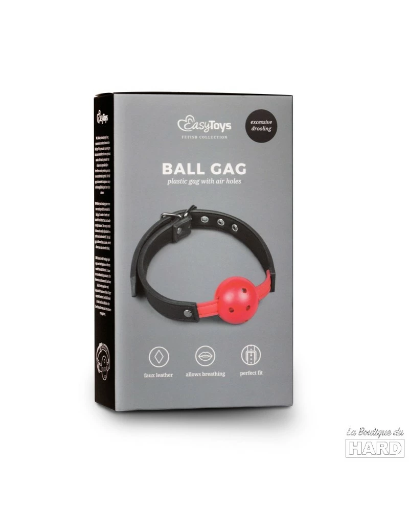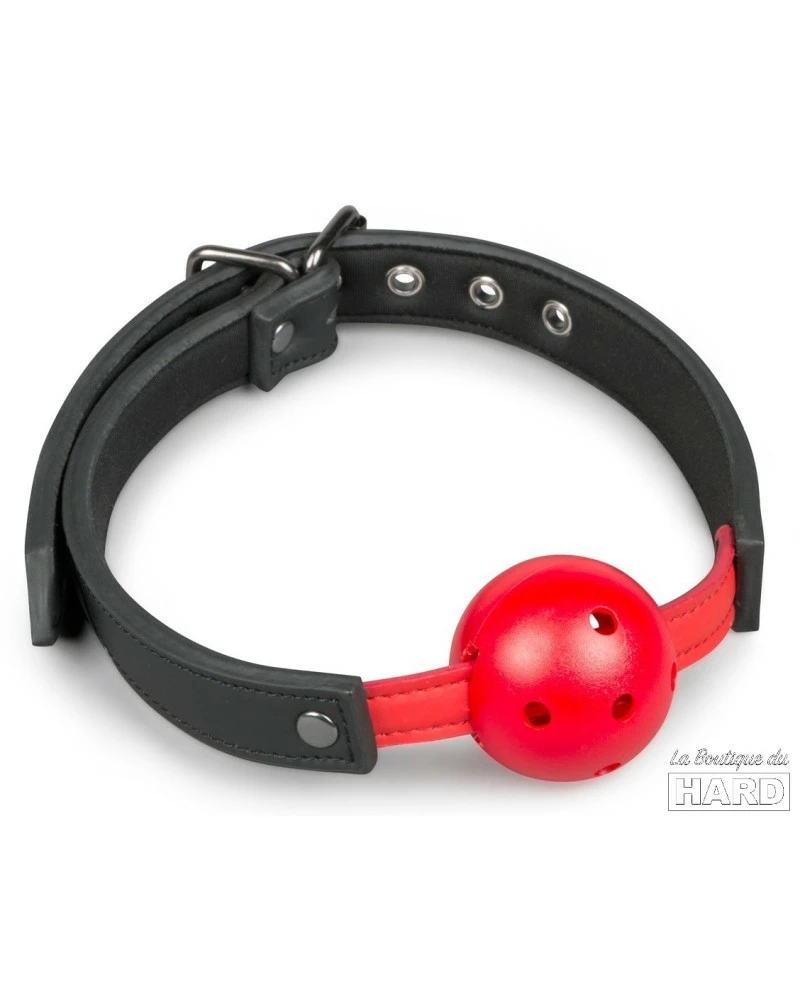 Cet accessoire de la marque EasyToys est un baillon avec une boule percée de couleur rouge.Il est idéal pour les moments de soumission. Le partenaire ne peut pas parler ni même utiliser sa bouche. La sangle est fabriquée en simili cuir. Elle est ajustable autour de la tête entre 44 et 62cm.Boule de 4.5cm de diamètre. Réalisée en PVC