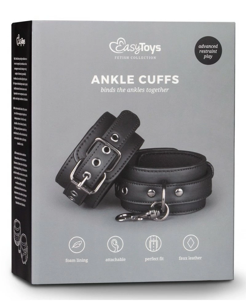Ces menottes de chevilles de la marque EasyToys sont idéales pour les moments de jeux coquins et pour la soumission.Elles permettent de lier les deux chevilles et de renforcer le plaisir.Elles sont fabriquées avec une largeur de 5.3cm. La longueur est de 13 à 30cm, ce qui permet un ajustement facile pour toutes les tailles de cheville. Elles sont fabriquées en matière simili (polyuréthane)