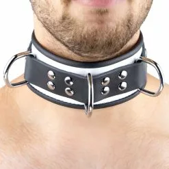 The Red Collier En Cuir 3 Anneaux D Blanc-Noir