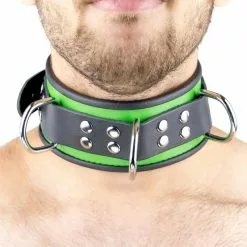 The Red Collier En Cuir 3 Anneaux D Vert-Noir