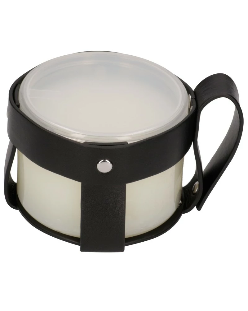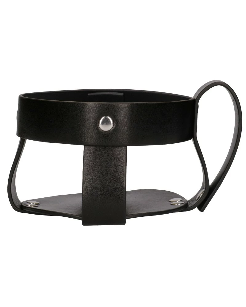 Cet accessoire est un soutien pour les pots de crème à Fist. Il est réalisé en matière Simili (imitation cuir) avec une anse pour le fixer à une ceinture par exemple.Il est utile pour garder les mains libres lors d’une séance de fist. Diamètre 10.5cm