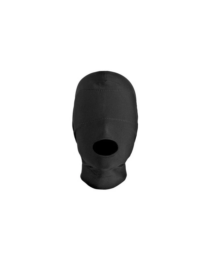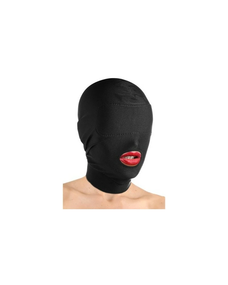 Cagoule sm en élasthanne avec une seule ouverture: celle de la bouche.Cet accessoire permet alors de cacher les yeux en occultant totalement la vue de votre partenaire et les sensations ne passent que par la bouche. Idéal pour les désirs SM et soumission.