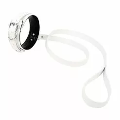 Ce collier et cette laisse sont des accessoires idéals pour les moments de soumission.Le collier mesure 5cm de largeur et s’ajuste facilement au cou. Il possède un intérieur noir. La laisse mesure 1 mètre.Les attaches sont en métal. Fabriqués en simili (polyuréthane)
