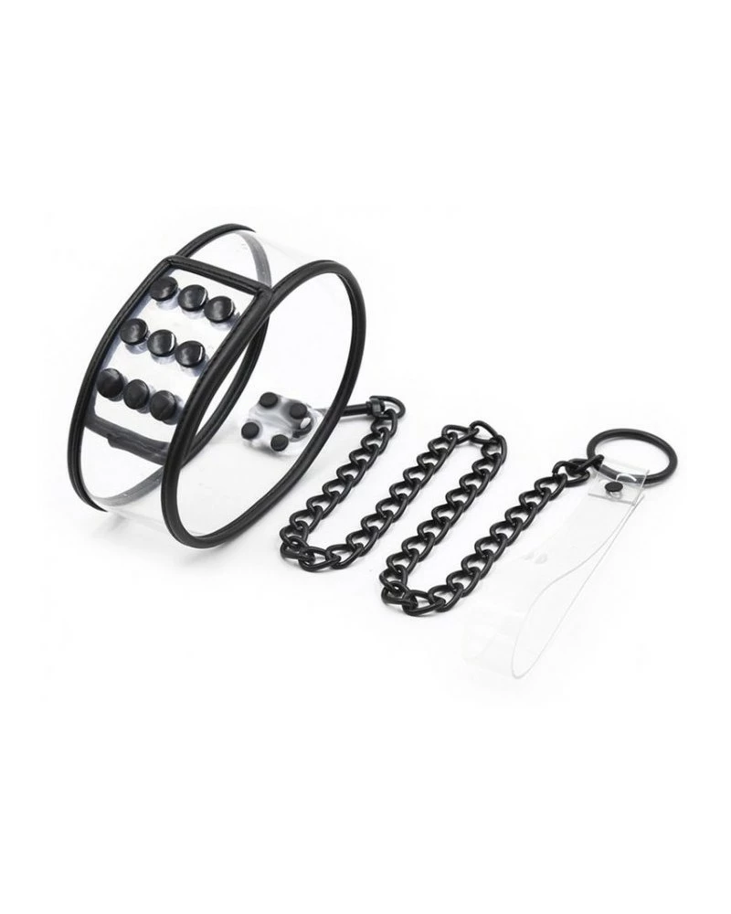 Ce collier Laisse Aquax est un accessoire original pour les moments de soumission.Il est composé d’une couleur Transparente avec les bordures et les attaches en noir. Longueur de 45cm et ajustable facilement au tour de cou.Largeur de 5.5cm. Laisse en métal de 78cm. Fabriqué en plastique