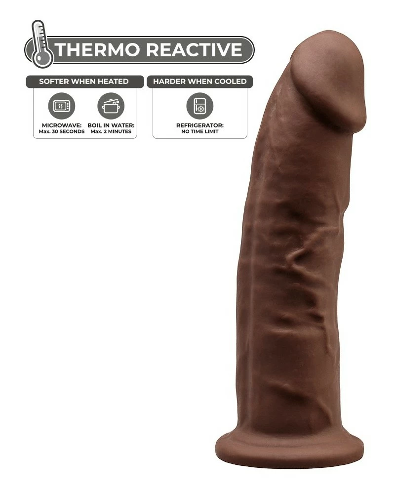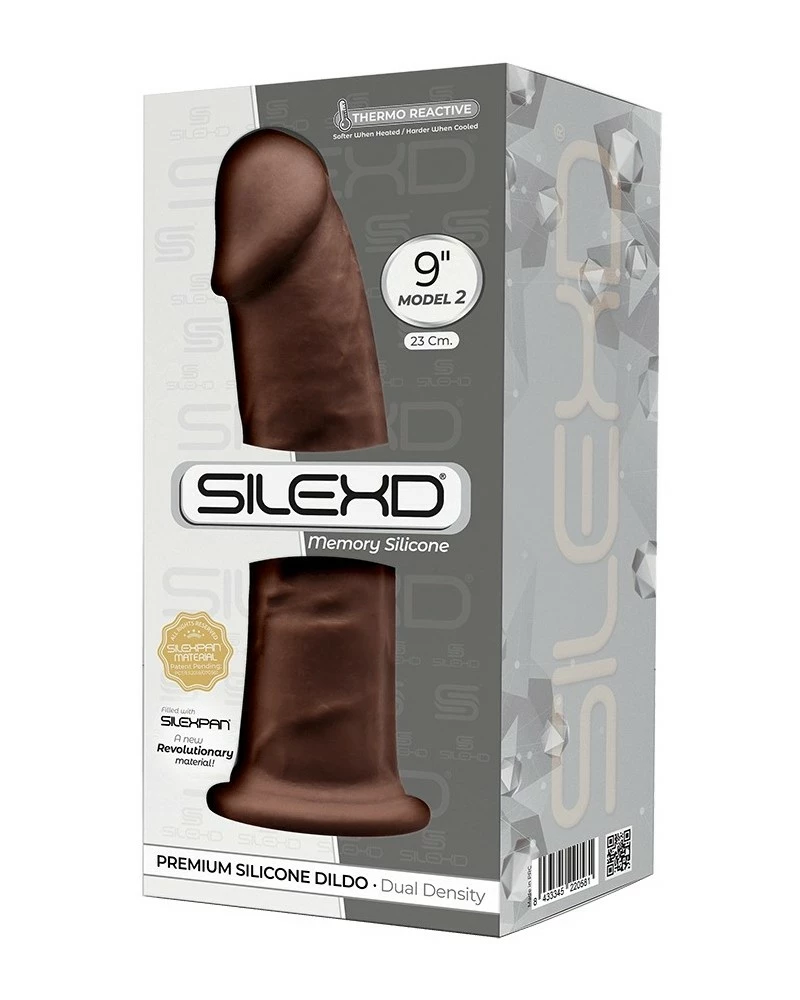Le gode Silexd Modèle 2 est ici dans sa version marron. Il est composé d’une forme réaliste avec un gland épais et une surface veinée.La matière est thermo-réactive modulant ainsi la structure du gode. La longueur insérable est de 21cm et la largeur maximale est de 5.3cm. En silicone
