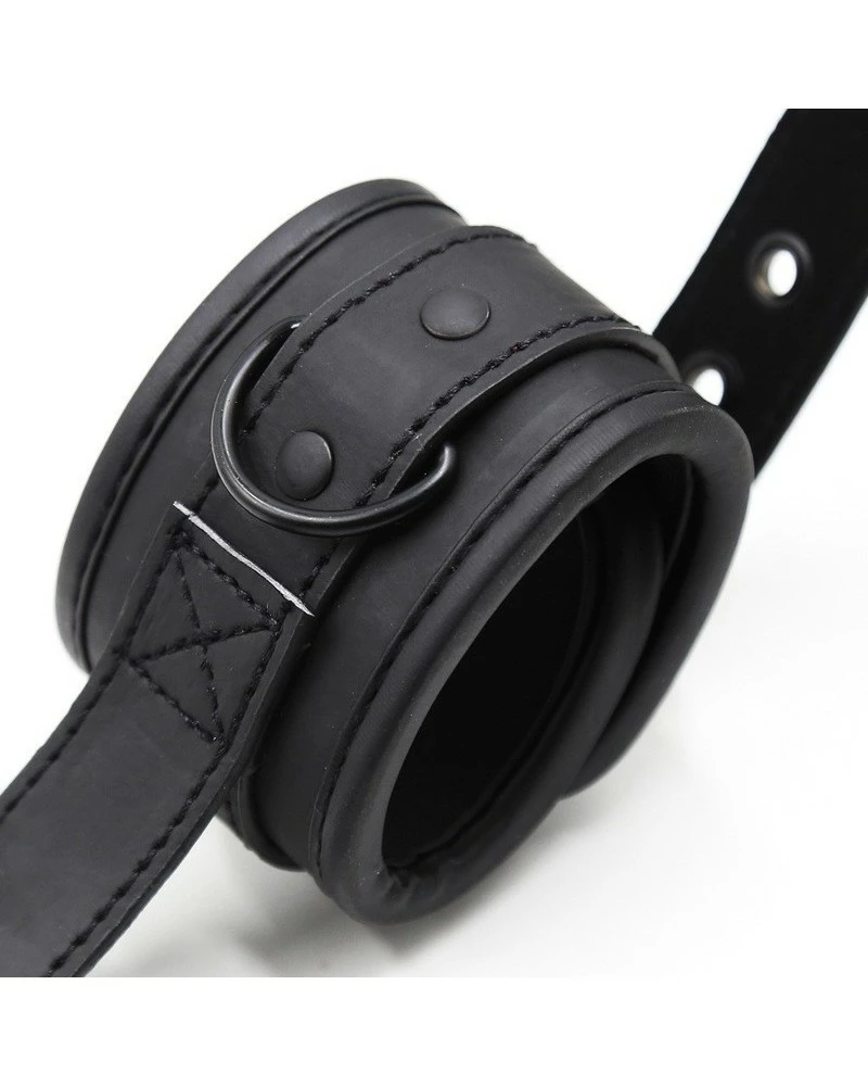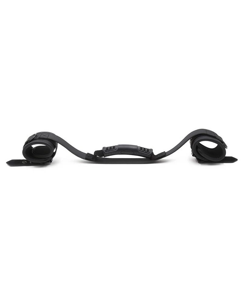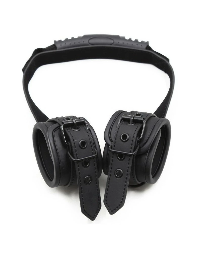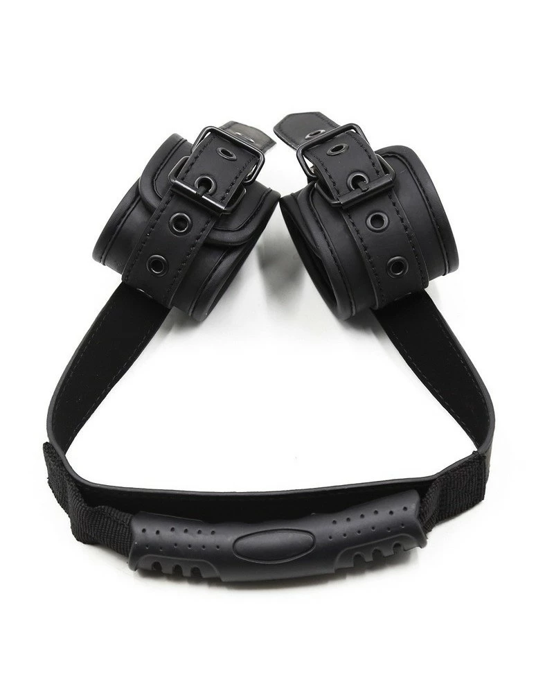 Ces menottes noires sont associées à une poignée qui relie les deux menottes.Accessoire SM original et permettant des jeux supplémentaires. Réalisées en simili cuir.Attaches ajustables