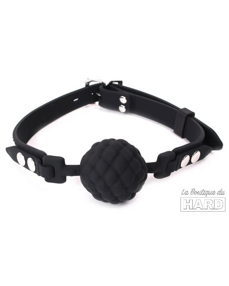 Ce baillon en silicone de la marque Kiotos est un accessoire idĂ©al pour la soumission.Il se compose d’une boule de 4cm de diamĂštre avec une surface type Pomme de pin.Les sangles sont ajustables facilement