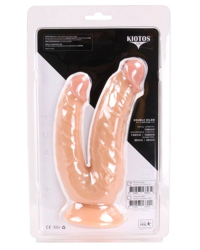 Le double gode Cox est un sextoy composé de deux sextoys idéals pour simuler une double pénétration.Il est réalisé avec une forme réaliste. Les dimensions sont : grand gode : longueur insérable de 15cm, largeur allant de 3.7 à 4.2cm petit gode : longueur insérable de 12cm, largeur allant de 3 à 3.5cm. Fabriqué en PVC