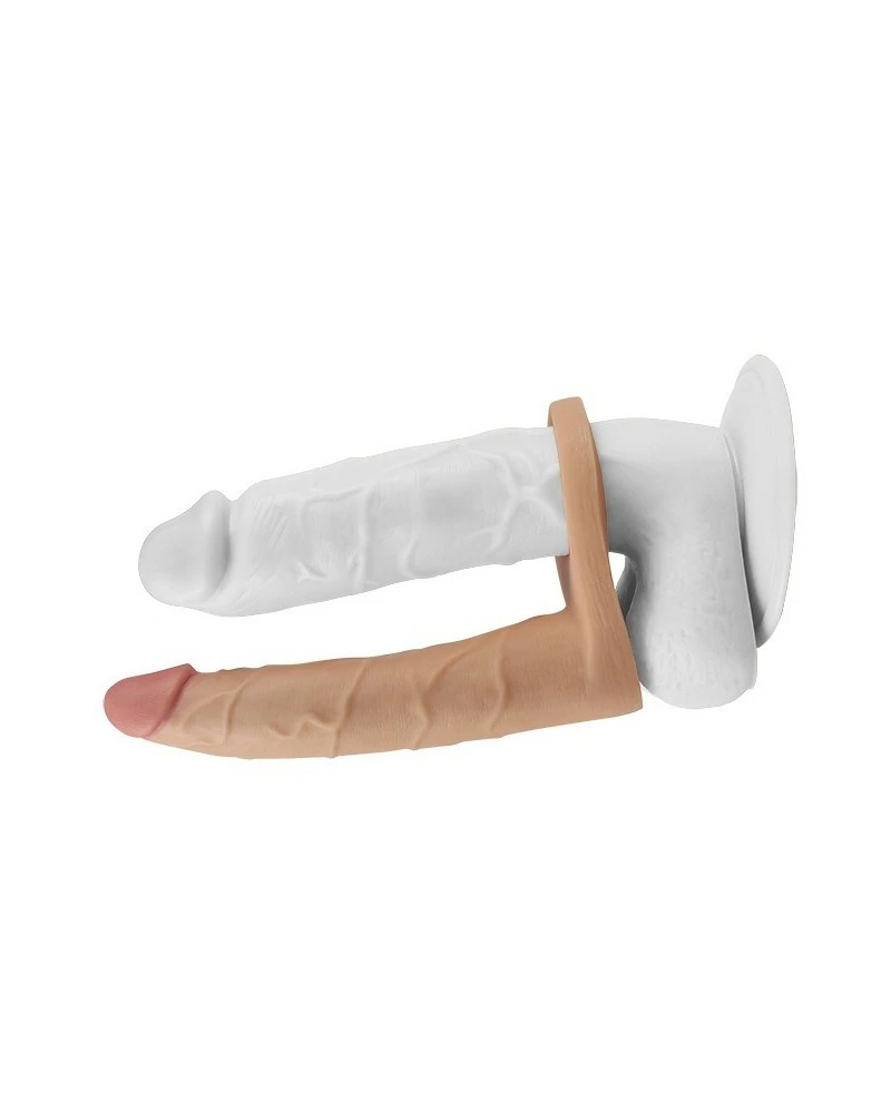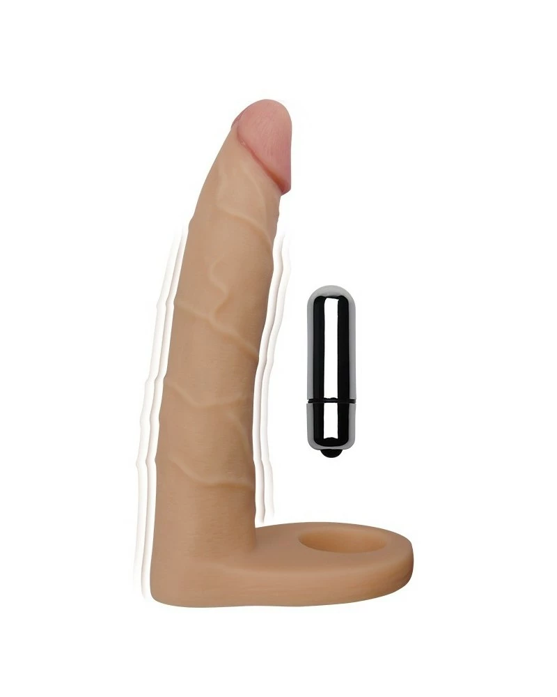 Ce gode vibrant est conçu pour simuler une double pénétration. Il est composé d’une longueur insérable de 16cm. La largeur est de 3cm.Il se place sur le pénis et vient diffuser les vibrations pour encore plus de sensations. Avec un bullet vibro amovible
