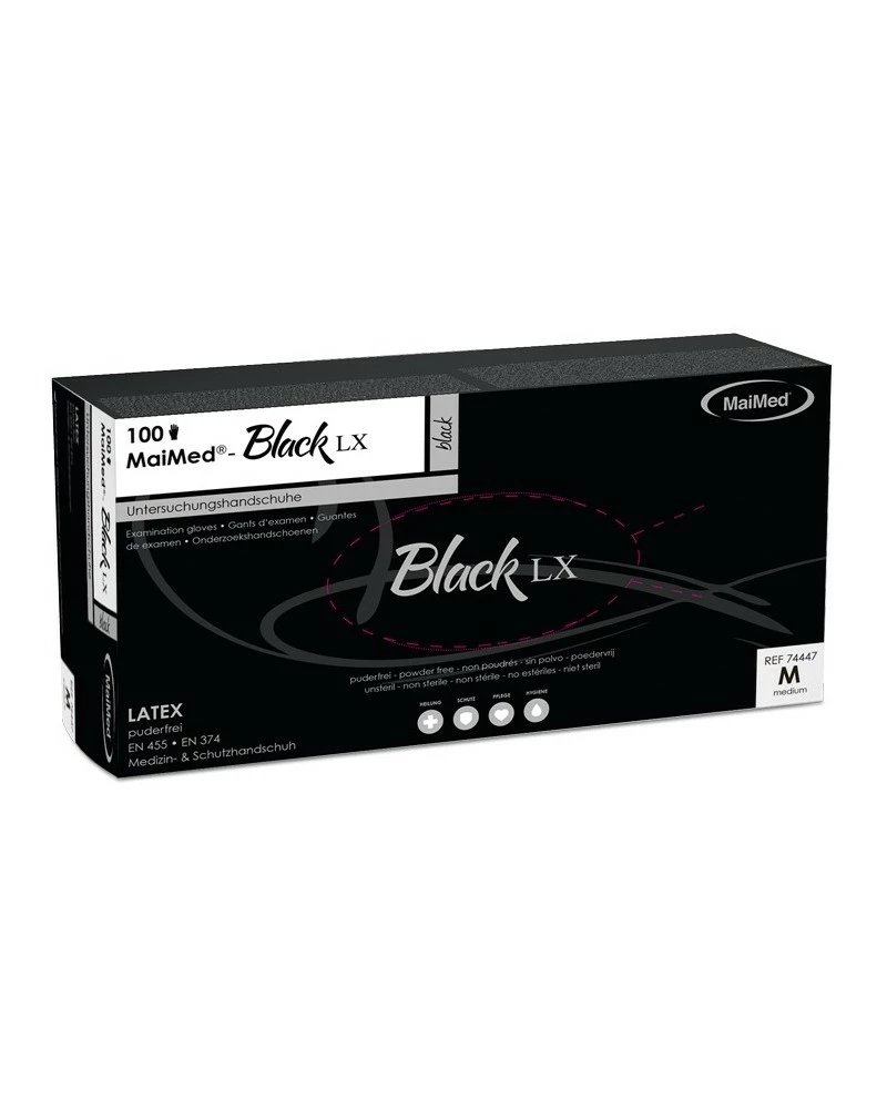 Les Gants en Latex non poudrés BLACK LX Noir x100 est un gants façonné par MaiMed. Ses caractéristiques en fait un jouet remarquable. Ce sera un temps de gaieté frénétique en duo d’utiliser ces gants.