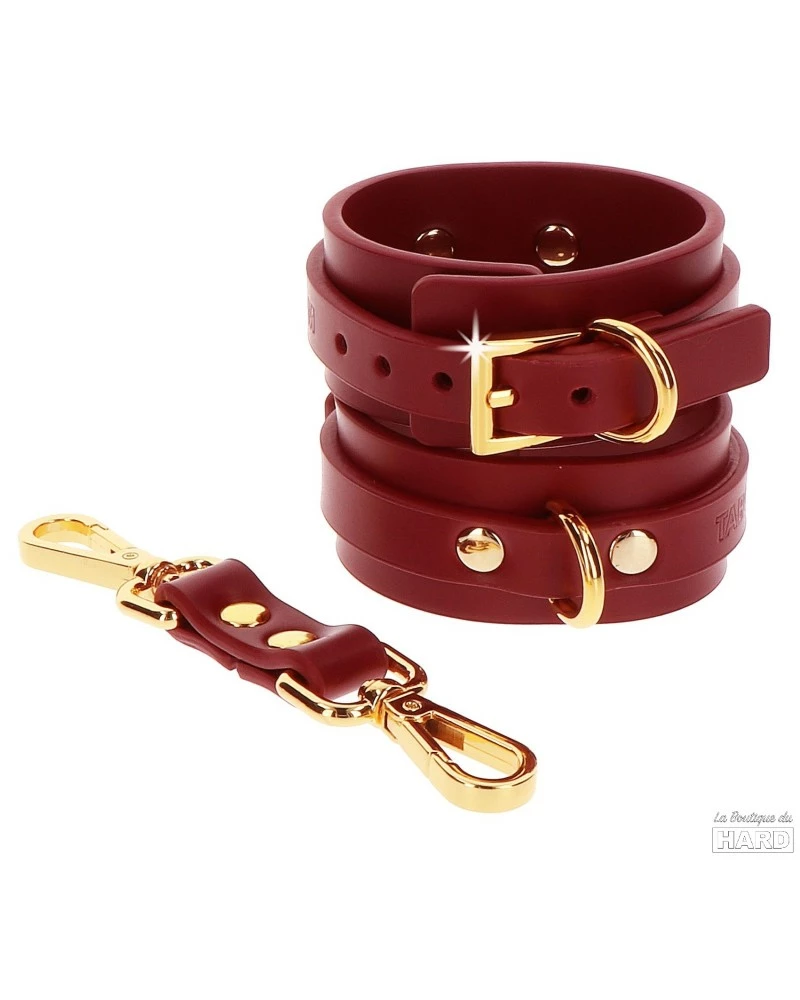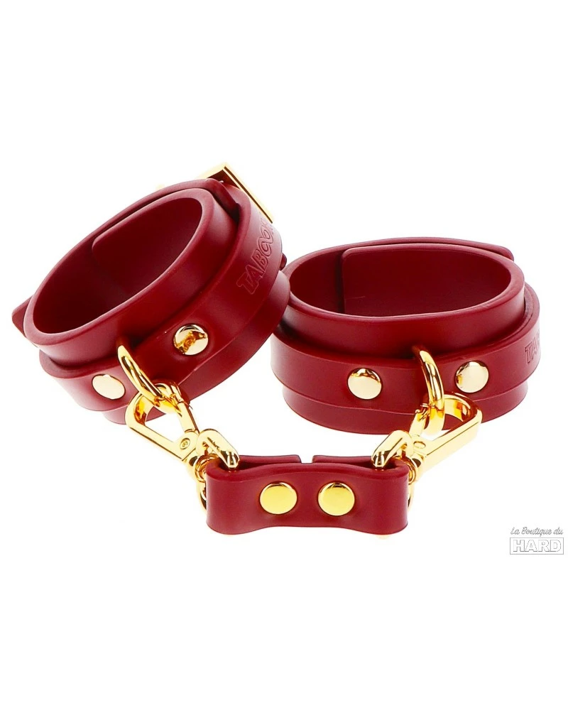 Ces menottes de poignets rouges de la marque Taboom sont idéales pour lier les deux mains.Elles sont conçues en matière polyuréthane avec un tour de poignet de 20 à 25cm.Les attaches sont en métal doré