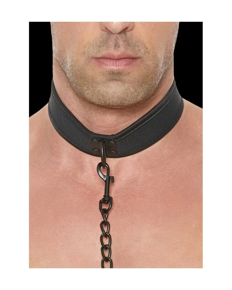 Ce collier en néoprène est idéal les moments de soumission.Il se compose d’une largeur de 3.5cm. La matière néoprène apporte du confort. Le tour de cou est facilement ajustable. La chaîne est en métal noir et mesure 1m de longueur