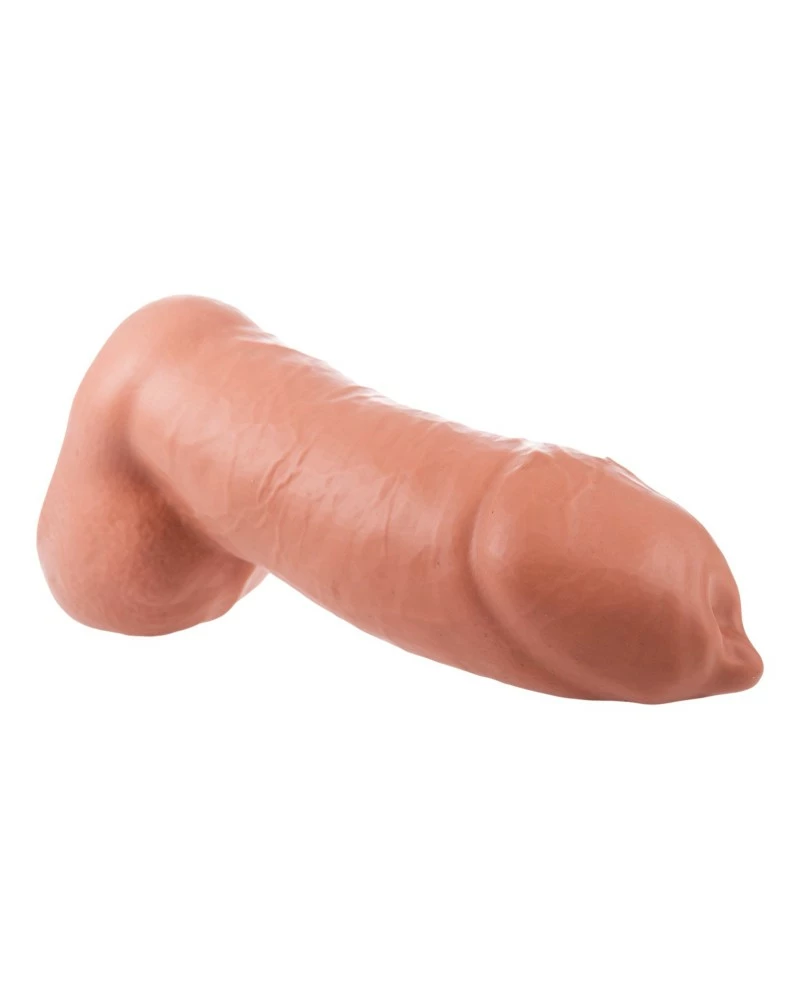 Le gode KRATOS est un sextoy de la marque Rawhide. Il est ici dans sa version XXL avec une taille volumineuse.La longueur insérable est de 24cm. La largeur est de 11.5cm. Ce gode reprend une forme réaliste avec un gland décalotté. La base est plate avec des bourses. Pour un bon maintien au sol. Il est fabriqué en silicone de haute qualité avec une texture à la fois souple et ferme