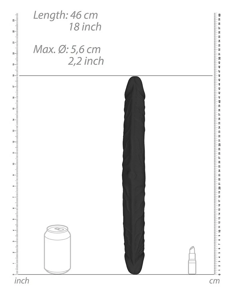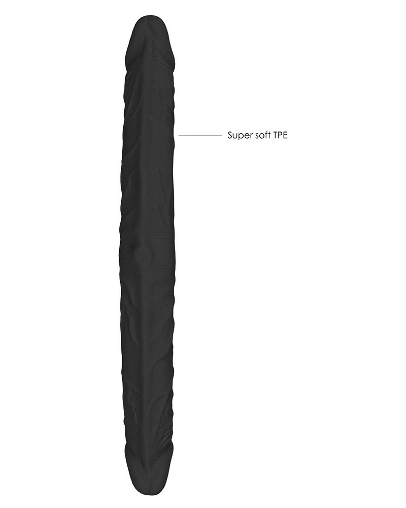 Le double gode Realrock est ici dans sa version noire. Il se compose d’une longueur totale de 45cm et d’une largeur de 5.2cm.Avec les deux côtés identiques et réalistes.La structure est souple. Il est fabriqué en TPE