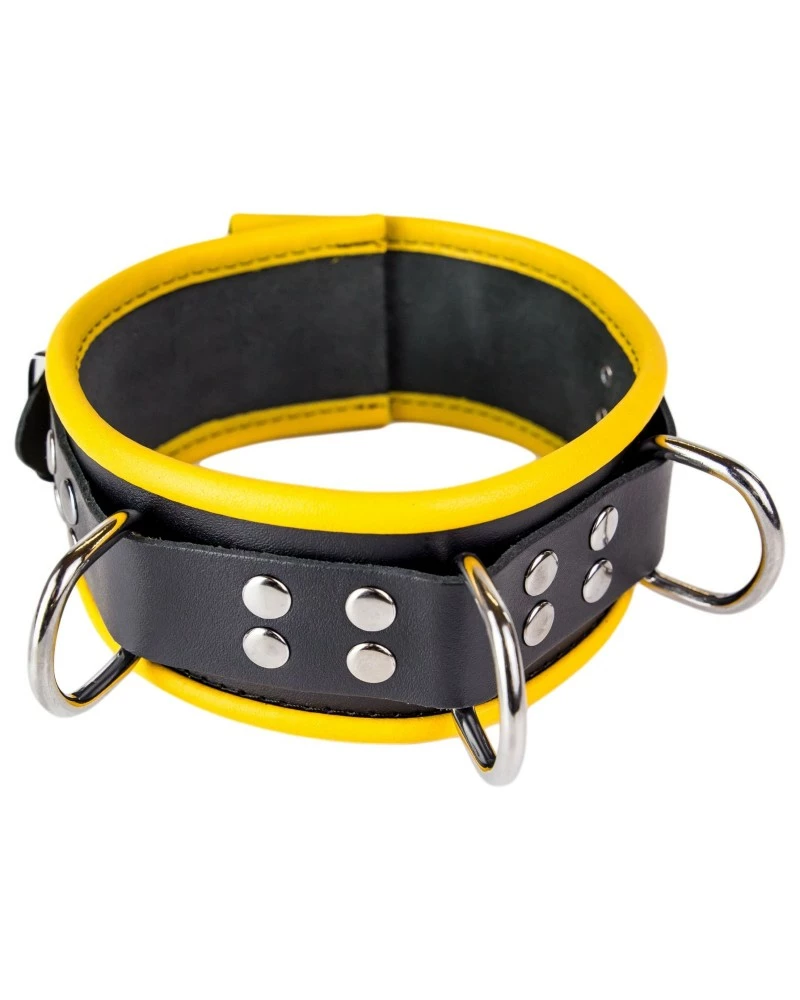 Acheter Le Collier en cuir 3 Anneaux D Noir-Jaune sur La Boutique du Hard