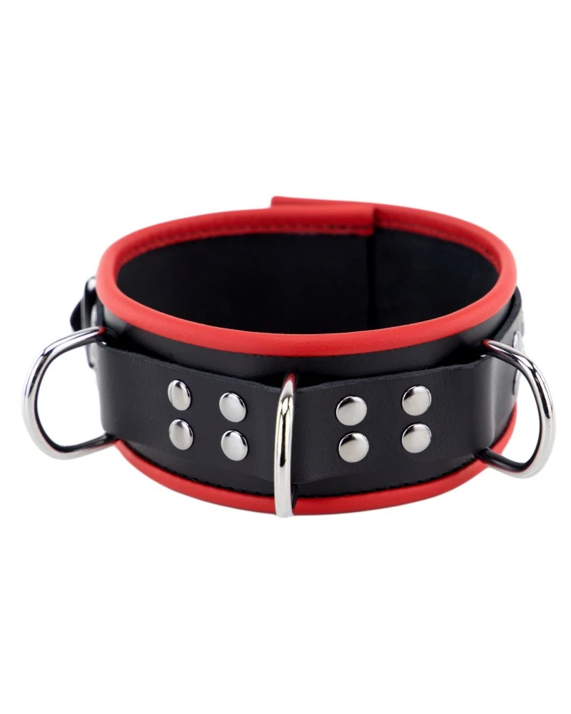 Acheter Le Collier en cuir avec 3 Anneaux D Rouge sur La Boutique du Hard