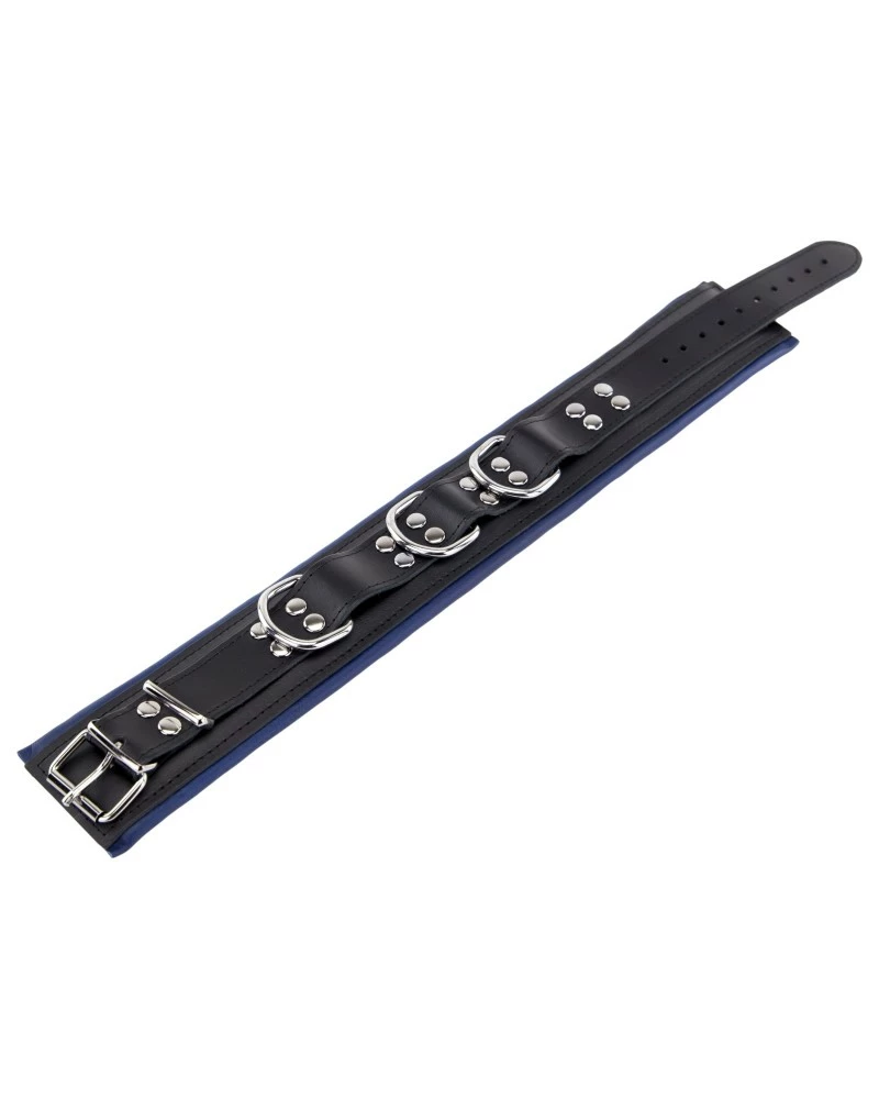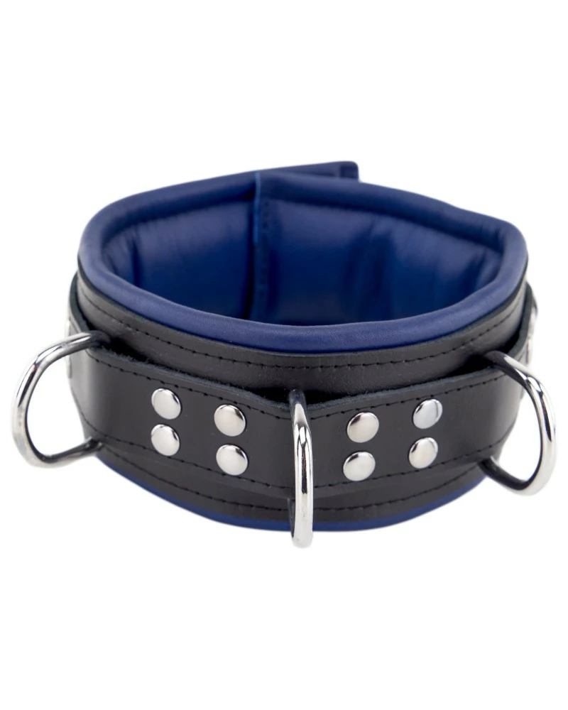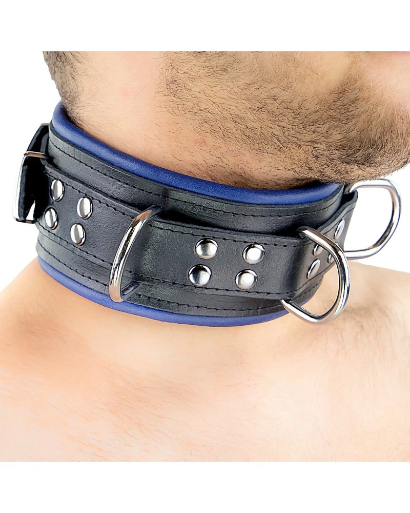 Commander Le Collier rembourré en cuir 3 Anneaux D Bleu sur La Boutique du Hard