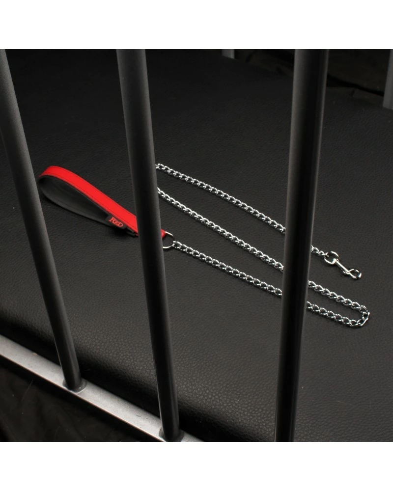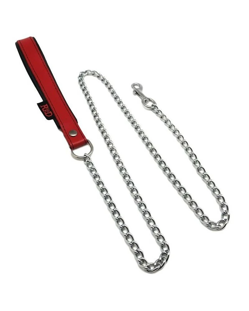 Cette laisse en métal mesure 1m et est munie d’un mousqueton pour l’attacher à un collier, un harnais ou autre accessoire.Idéale pour les moments de sexe SM. La poignée de 19cm est recouverte d’une bande rouge et est fabriquée en cuir véritable (de vache)