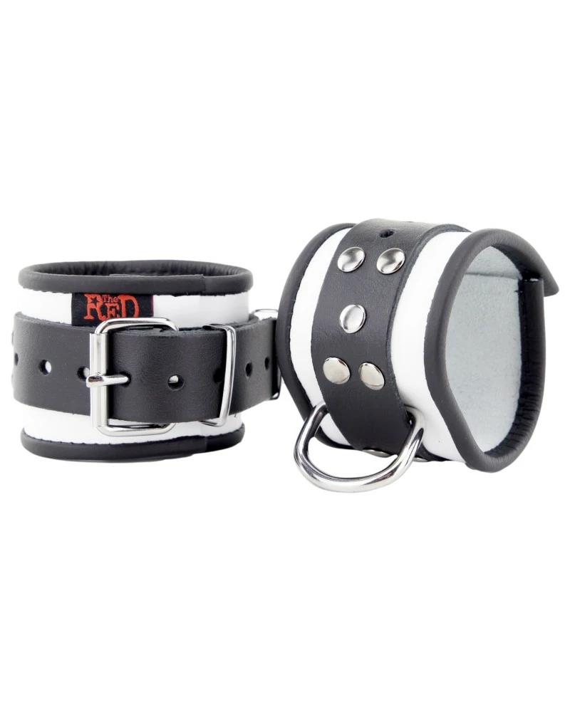 Ces menottes de la marque The Red sont conçues avec le contraste blanc et noir. Elles sont idéales pour les moments de soumission.Elles possèdent une largeur de 6.5cm et une épaisseur fine. Les attaches sont en métal. Livrées avec un mousqueton métallique amovible. Tour de 21 à 32cm. En cuir véritable de vache (fabrication en Europe)