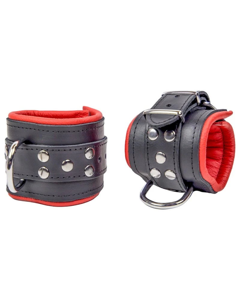 Acheter Les Menottes Rembourrées en cuir pour les poignets Noir-Rouge sur La Boutique du Hard